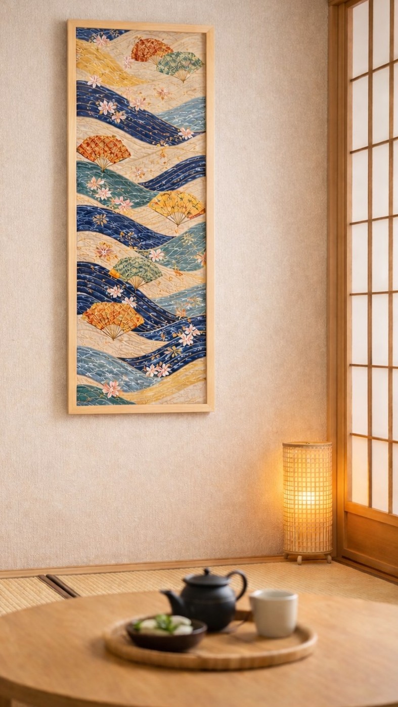 お気に入りの手拭いを入れ替えるだけで、季節のインテリアを楽しめます。